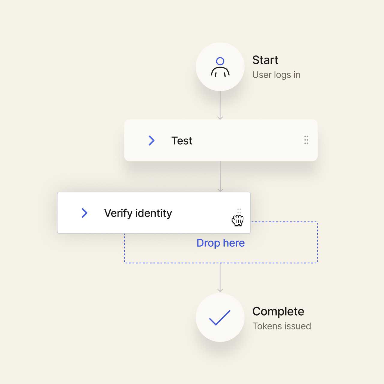 Visually drag and drop Actions to build custom Identity flows. No need to rewrite your code to reorder and reconfigure functions.